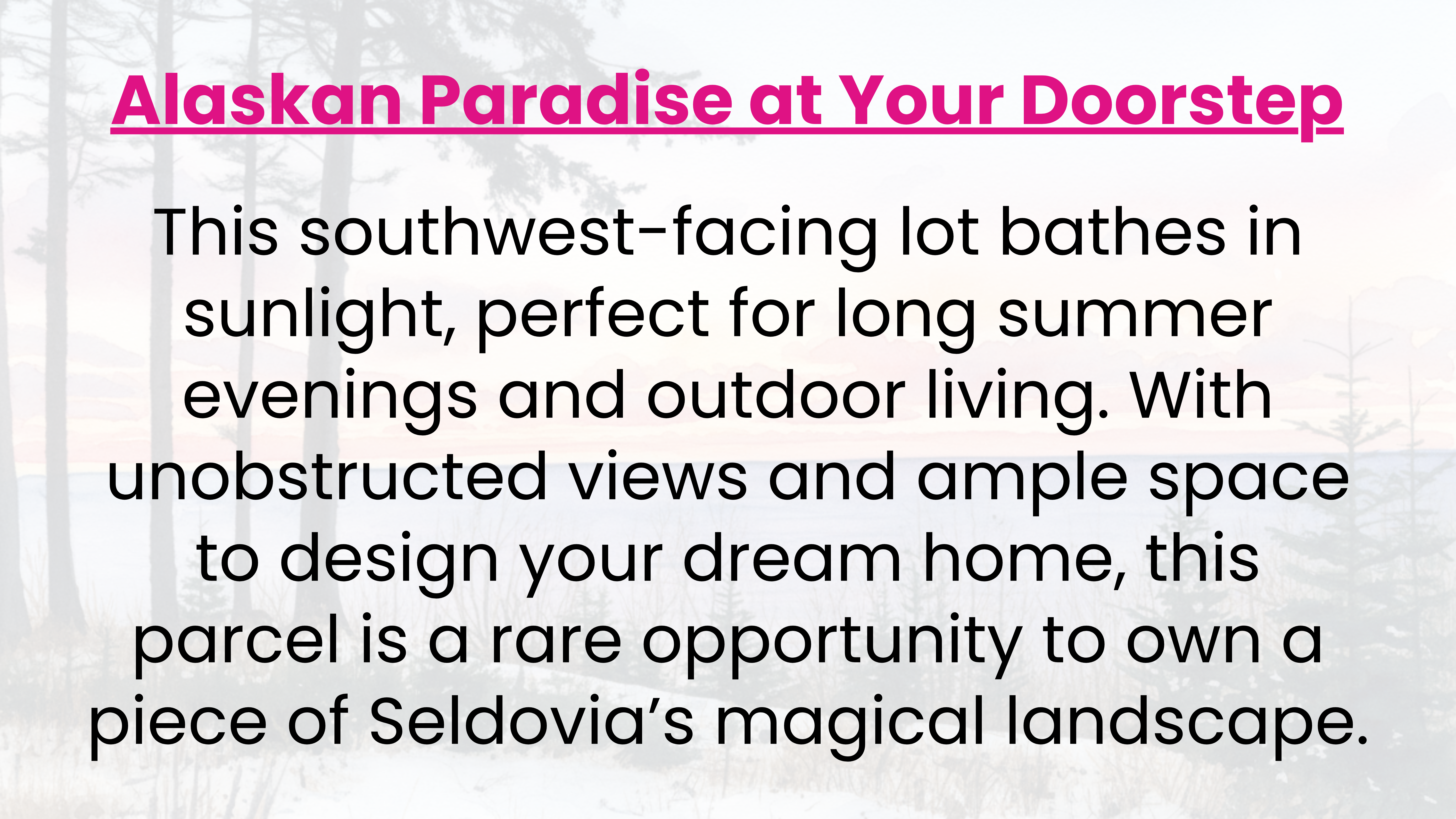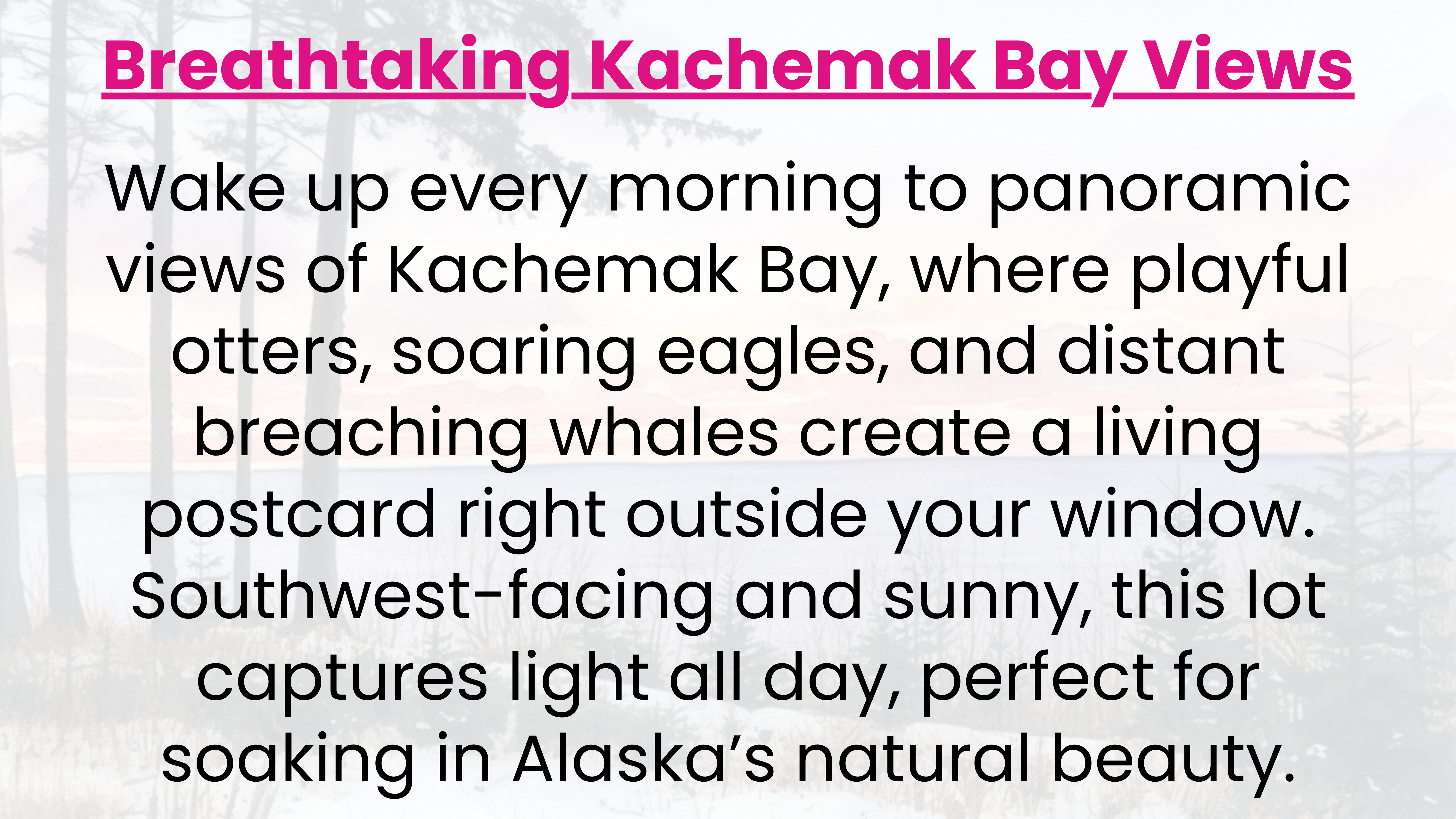 Wake to Kachemak Bay views from this sunny southwest-facing 3.07-acre bluff parcel in Seldovia, Alaska. Enjoy breathtaking panoramas of otters, eagles, and distant whales, with ample sunlight ideal for solar power. True off-grid freedom awaits, no utility power, but perfect for sustainable energy setups. Established driveway, gently sloping terrain with multiple build sites. A must see.